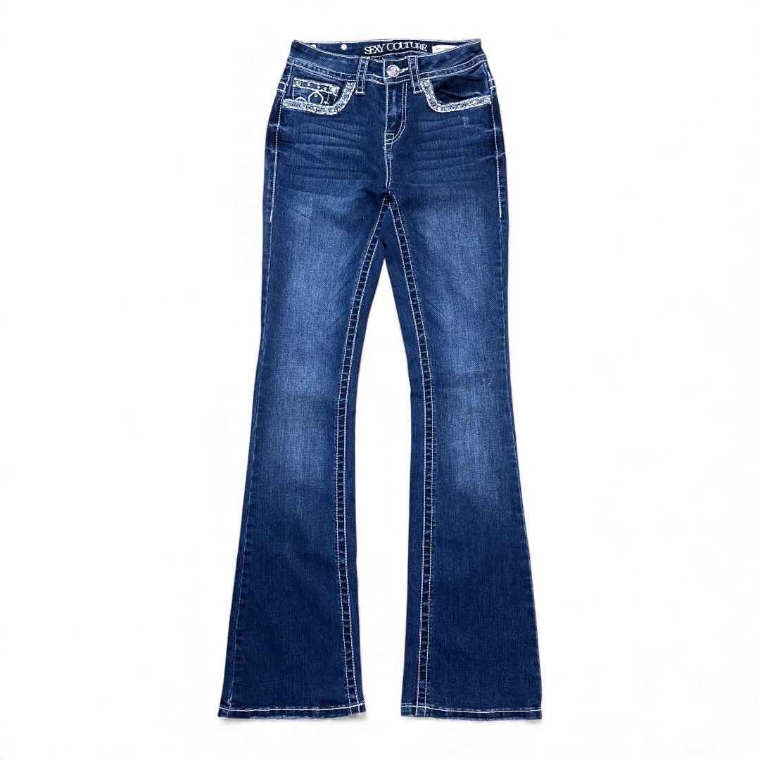 Sexy Couture Low Waist Bootcut Jeans – Blau (Größe 24)