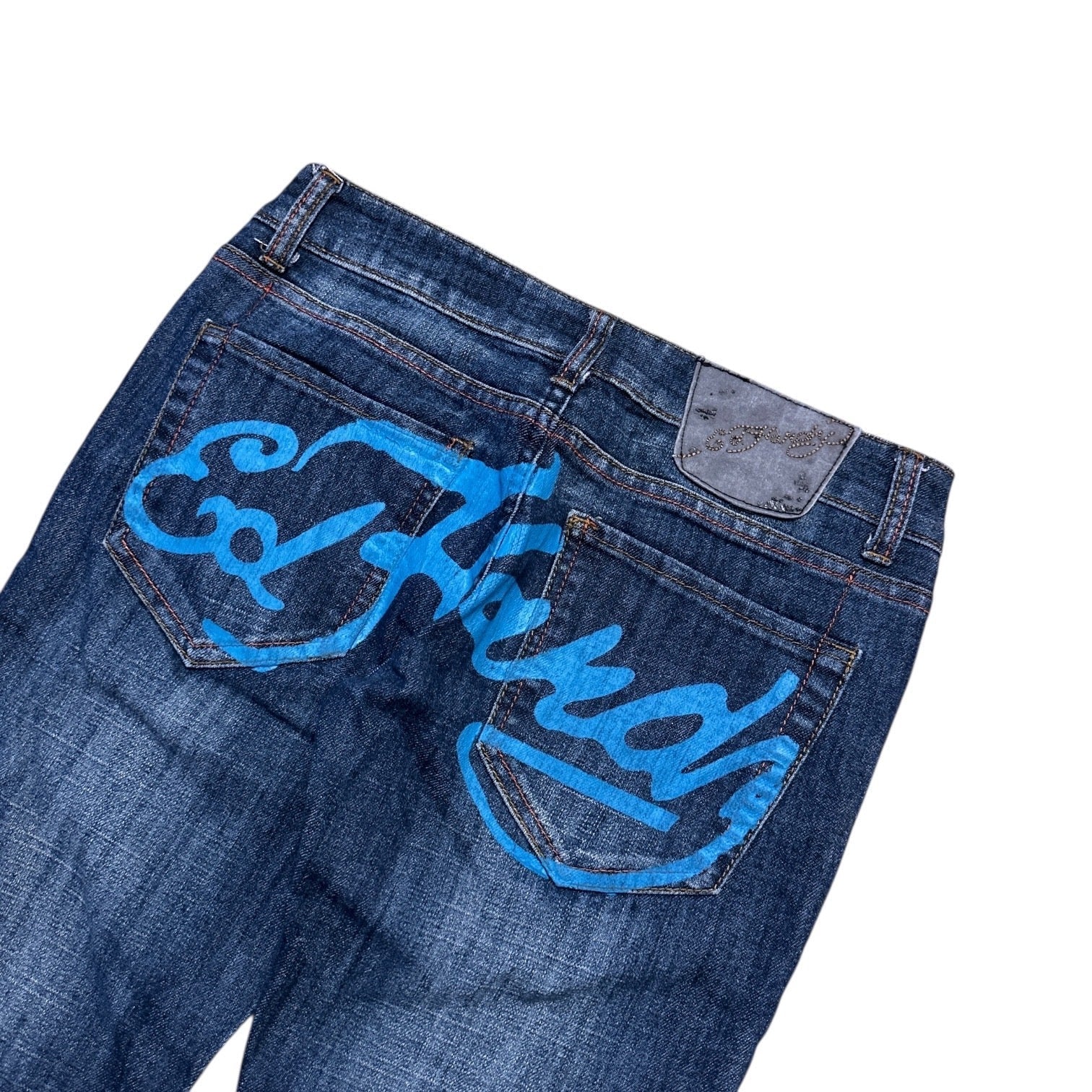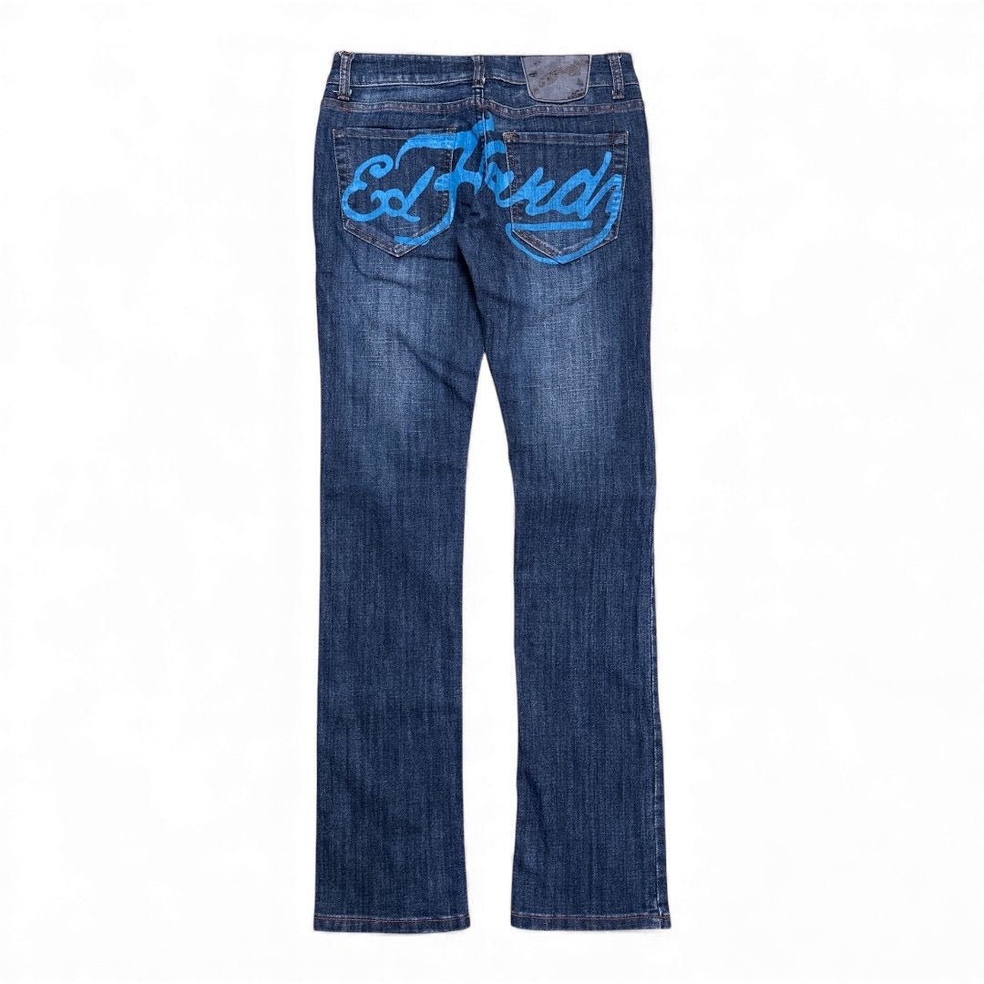 Ed Hardy Low Waist Bootcut Jeans – Blau (Größe 27)