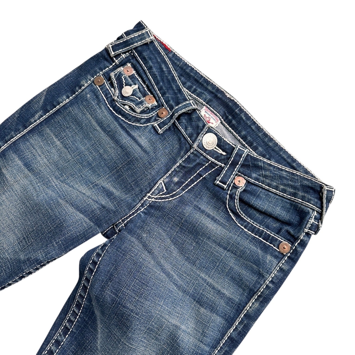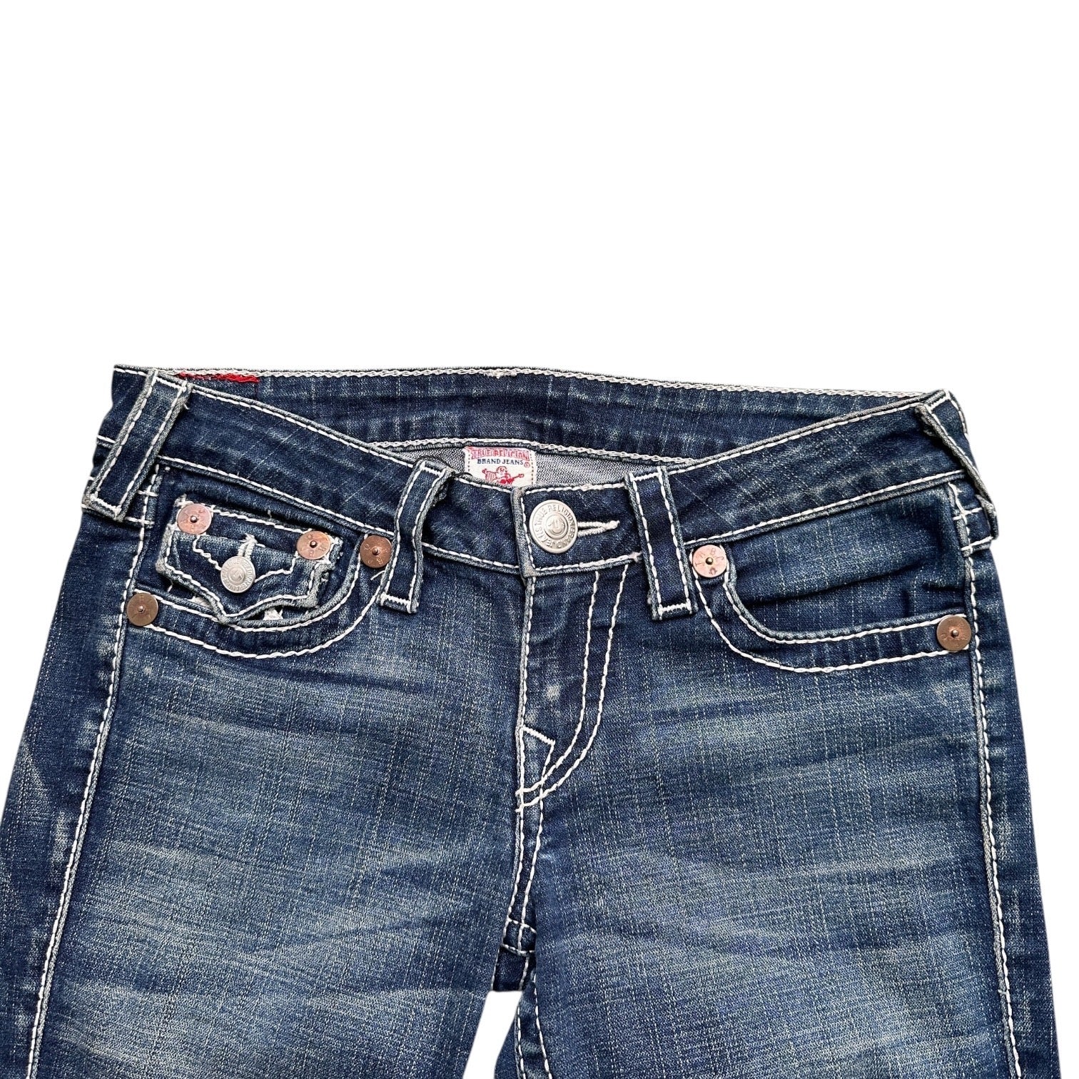 True Religion Rainbow Joey Bootcut Jeans – Blau (Größe 28)