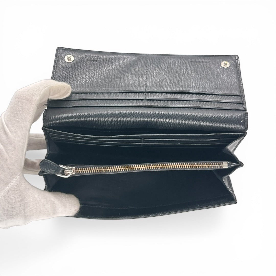 Prada Saffiano Leather Wallet Portemonnaie Schwarz - vintageconcierge