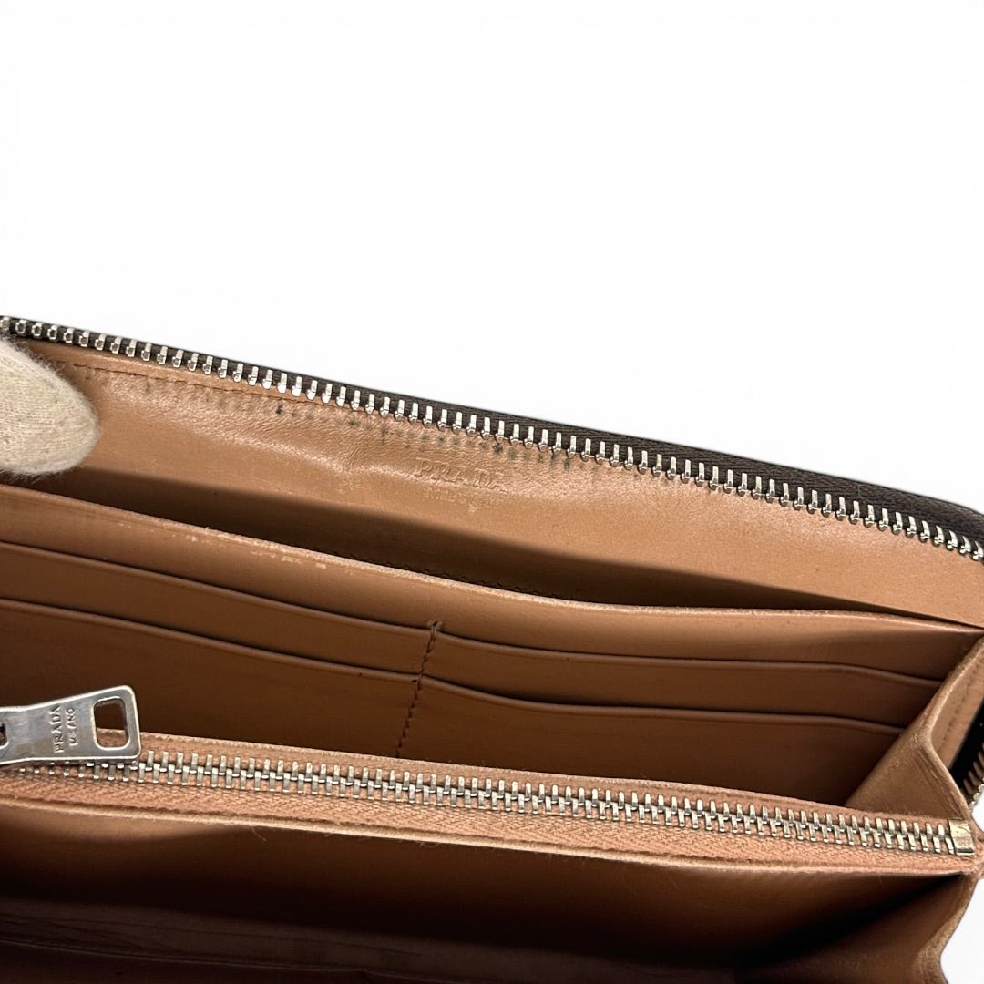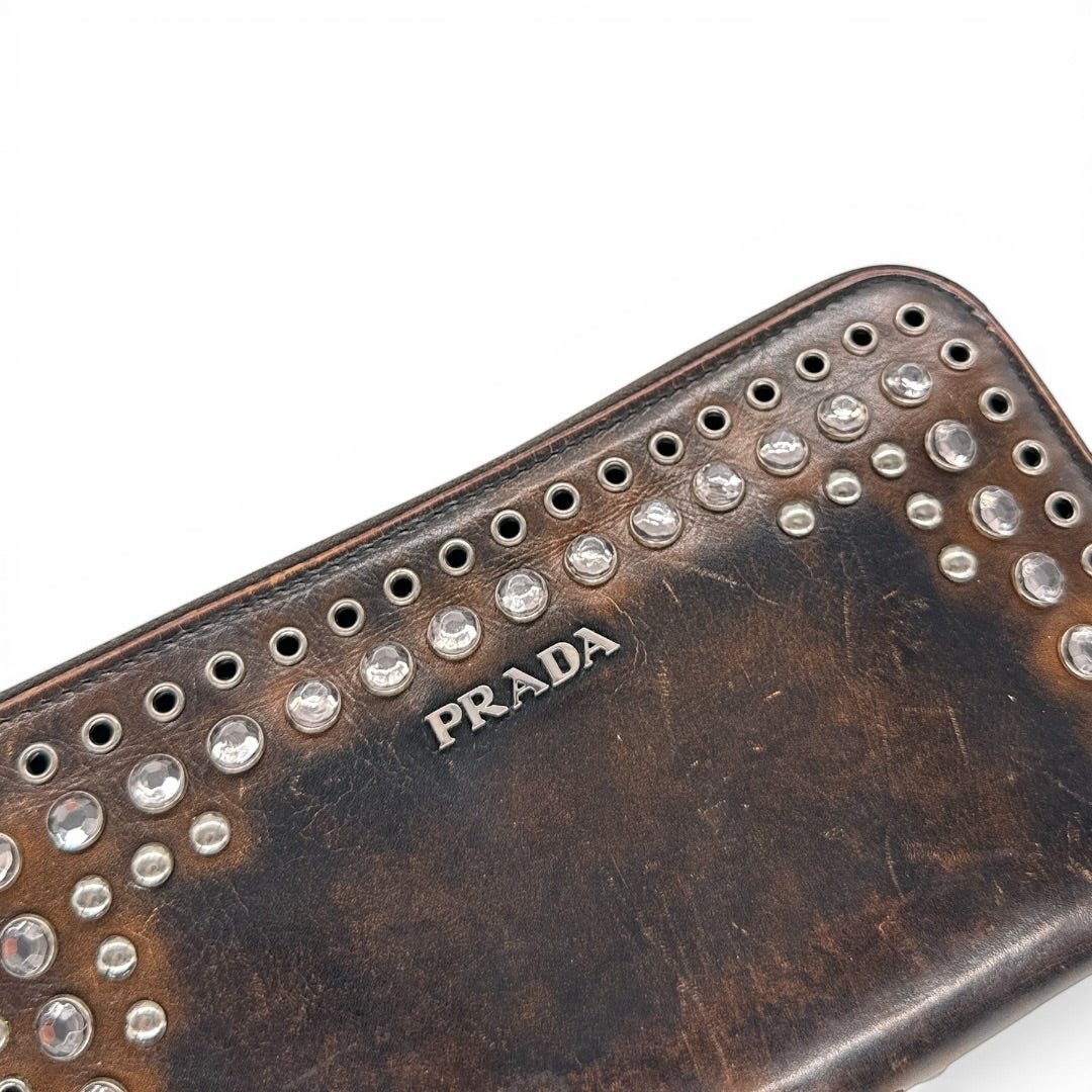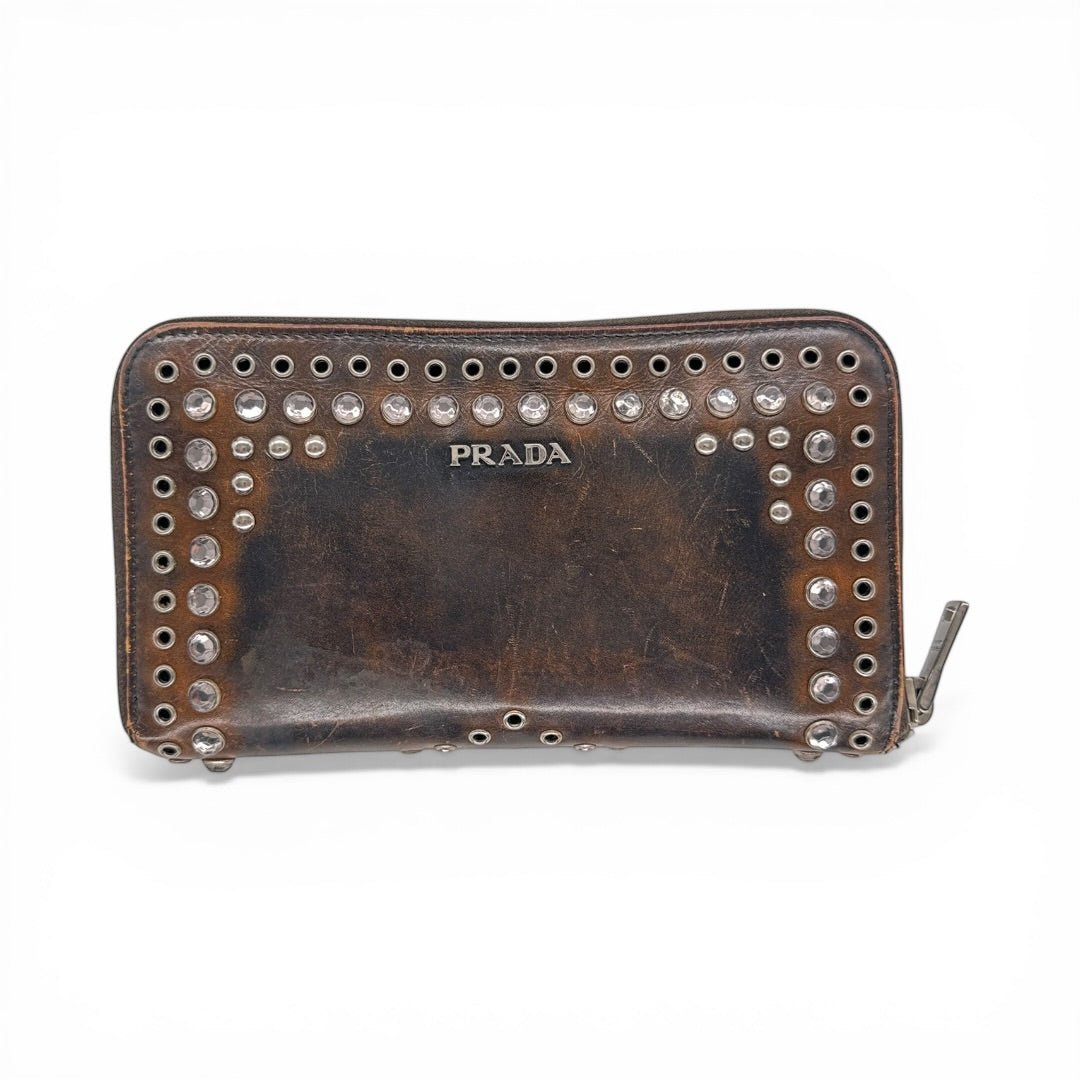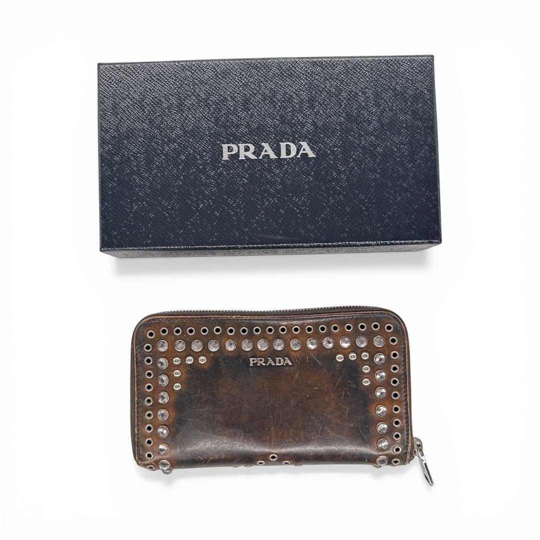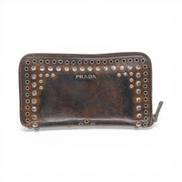 Prada Studded Leather Wallet Braun